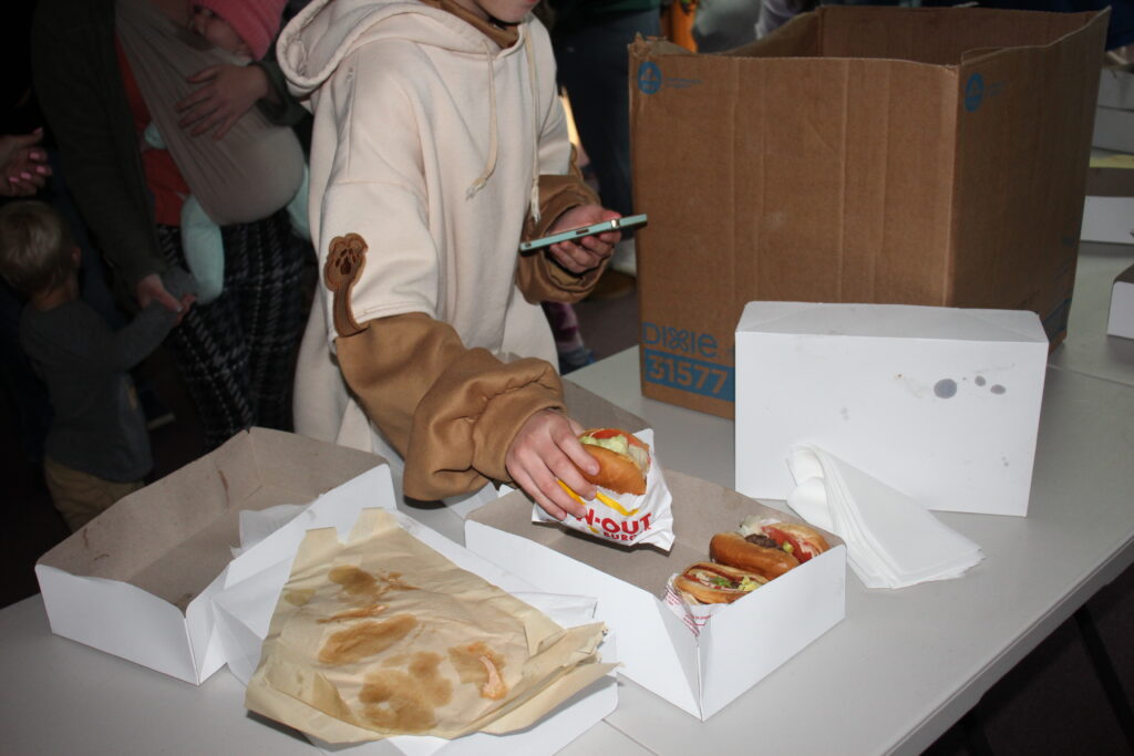 - Families gather to get their donated meals from In-n-out. Photo by Linsey Towles