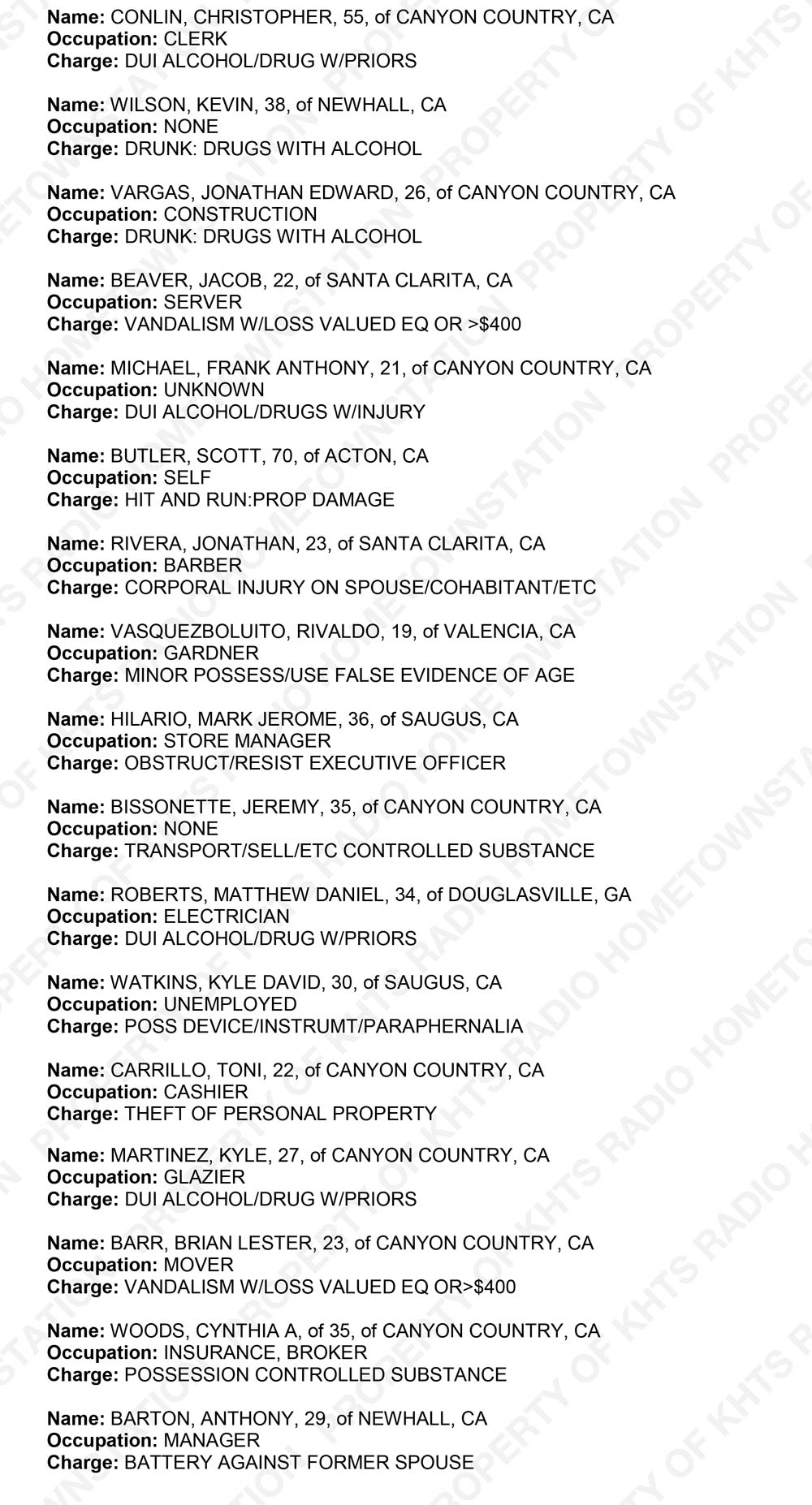 Santa Clarita Crime Report is a service provided by KHTS Radio and Santa Clarita Sheriffs as a part of Santa Clarita Neighborhoods.