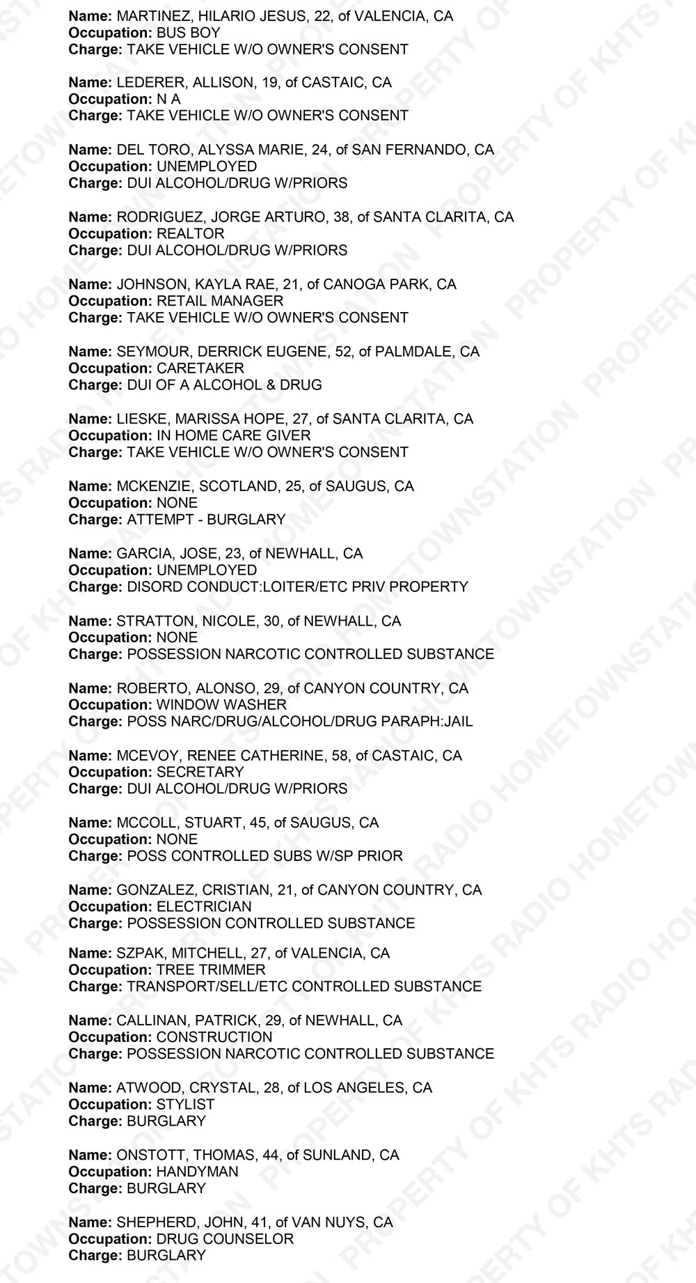 Santa Clarita Crime Report is a service provided by KHTS Radio and Santa Clarita Sheriffs as a part of Santa Clarita Neighborhoods.