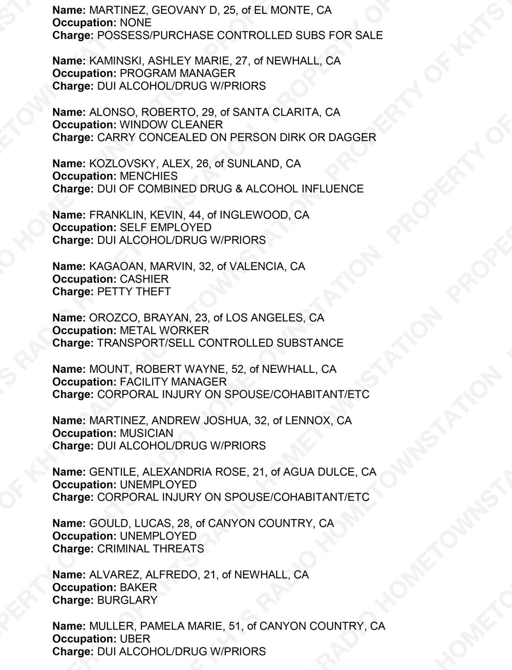 Santa Clarita Crime Report is a service provided by KHTS Radio and Santa Clarita Sheriffs as a part of Santa Clarita Neighborhoods.