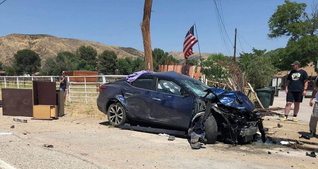 Officials also noted that the car might have also hit furniture alongside Bouquet Canyon Road.