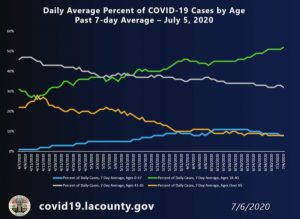 The Los Angeles County Department of Public Health (Public Health) reported that almost half of all new cases of COVID-19 have arisen among the younger population, with the highest increase in the percentage of cases among residents between 18 and 40 years of age as of Monday.