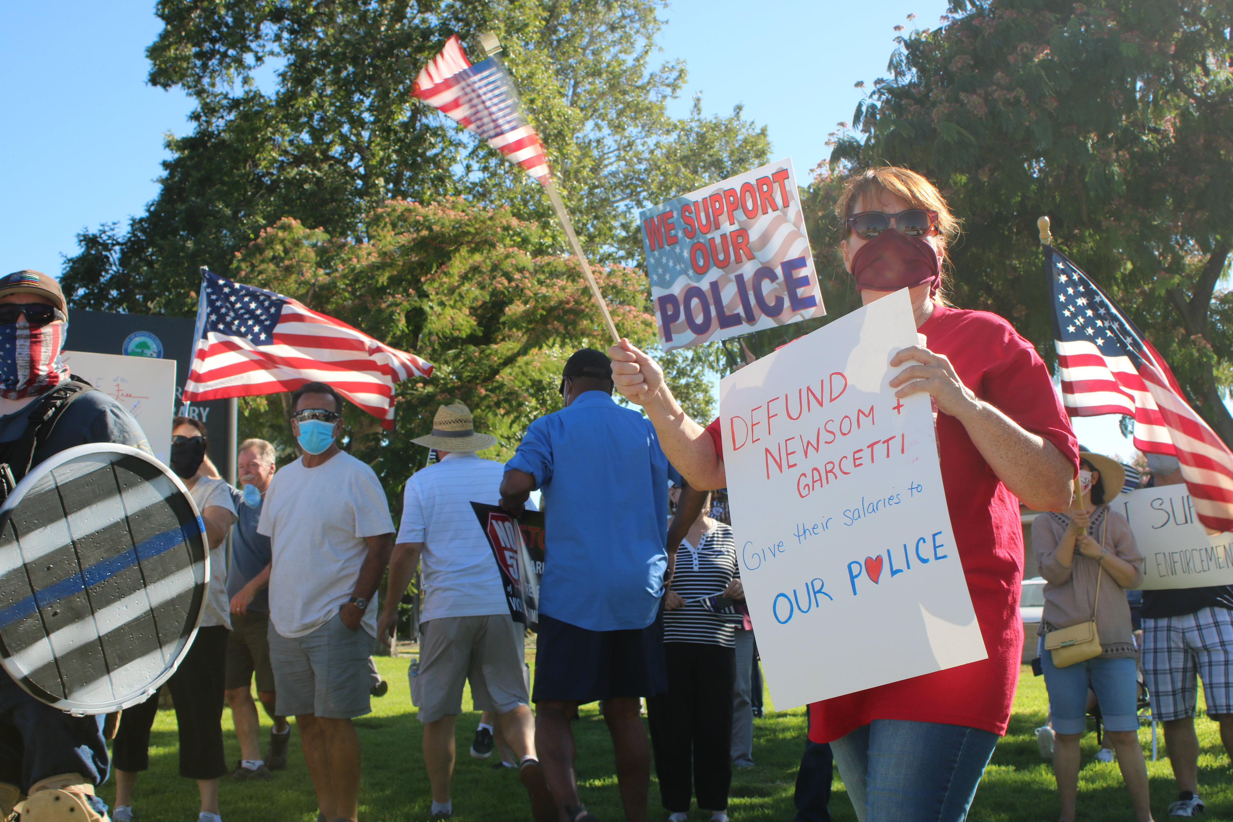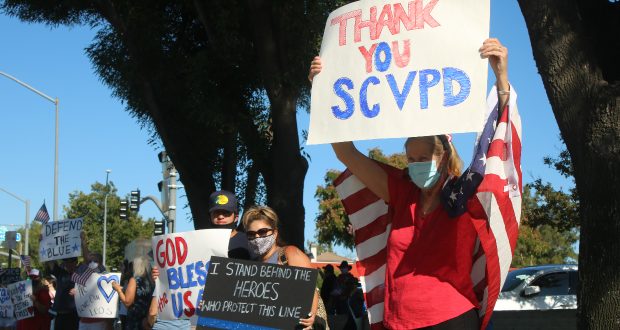 On Friday, hundreds of residents gathered outside of the Santa Clarita Valley Sheriff’s Station near the corner of Valencia Boulevard and Magic Mountain Parkway for a “Pro-Police” rally.