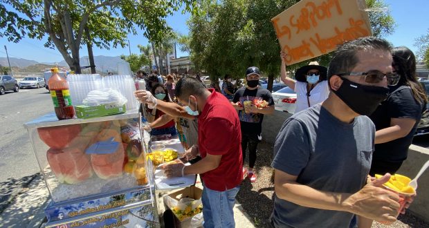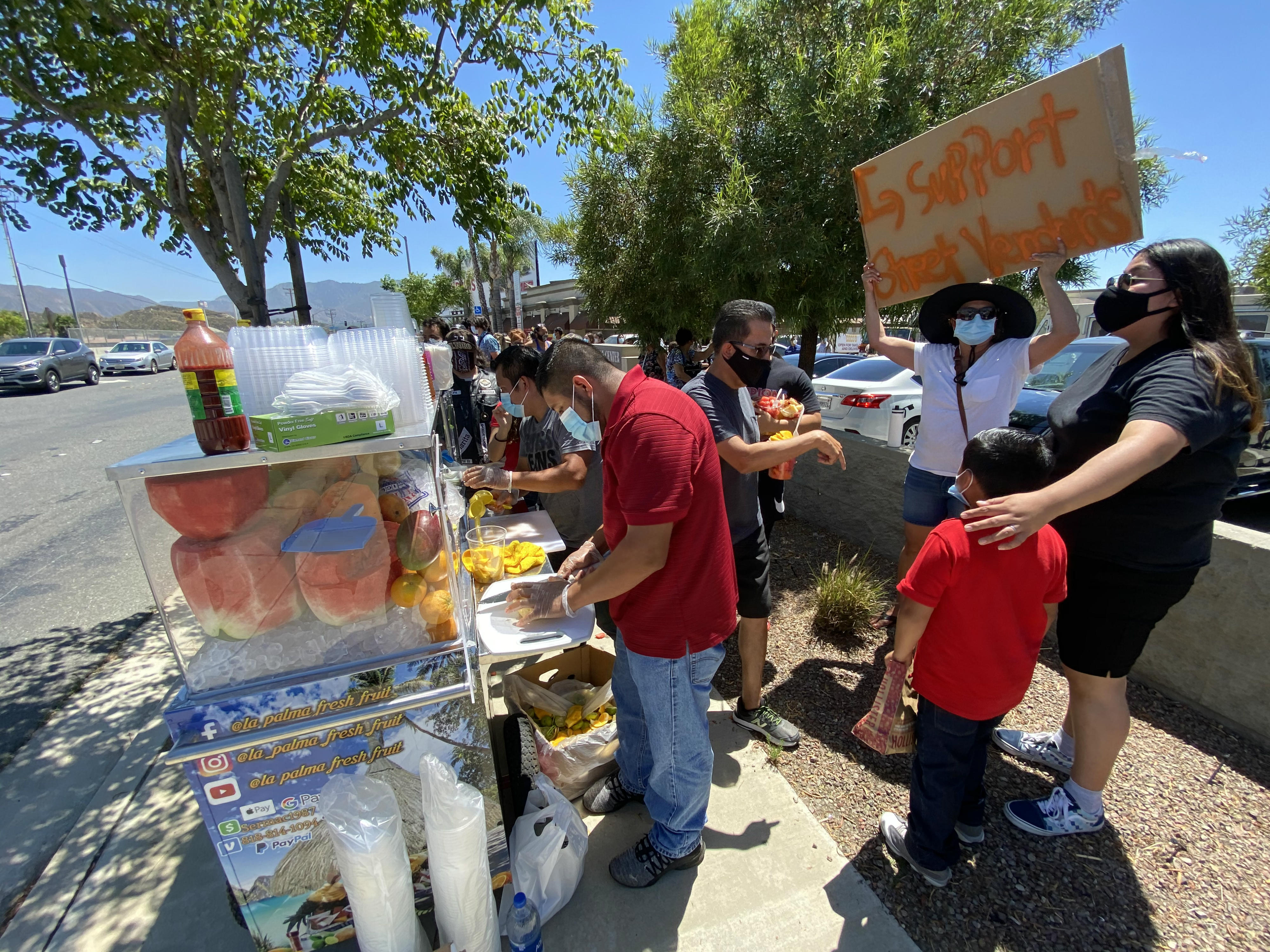 On Monday, hundreds of residents lined the sidewalk near the intersection of Soledad Canyon Road and Sand Canyon Road in Canyon Country to support local fruit vendor La Palma.
