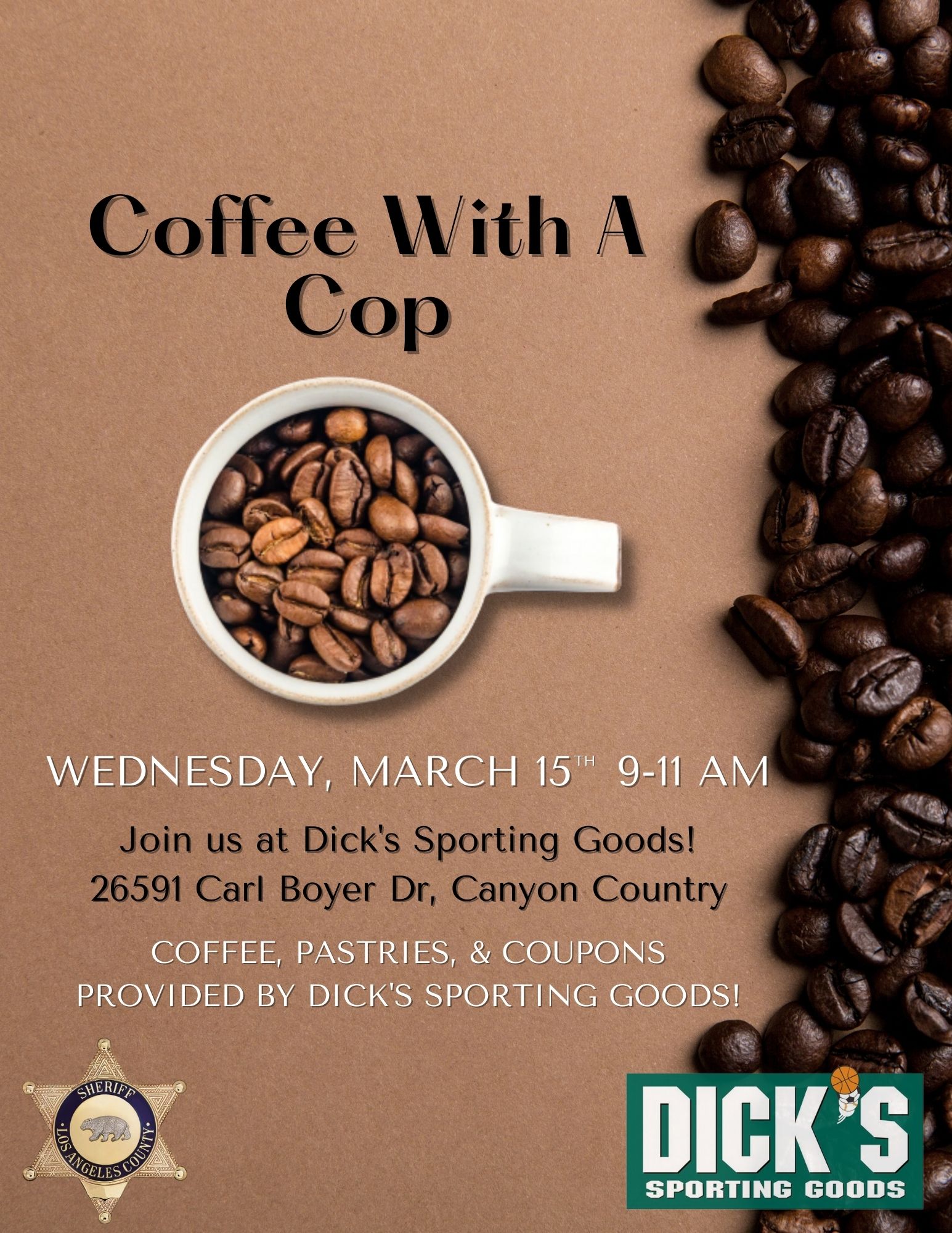 Deputies with the SCV Station are ready to meet with local residents and discuss their concerns on Wednesday, March 15, between 9 a.m. and 11 a.m. at “Dick’s Sporting Goods” in Canyon Country.