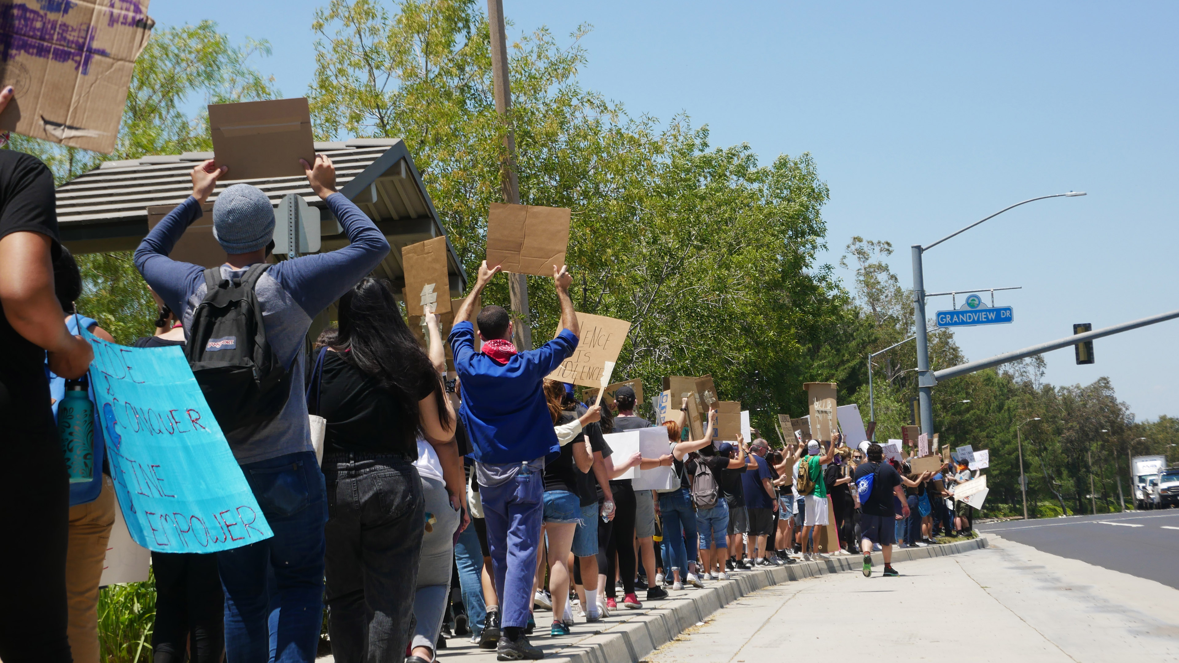Those rumors are what sparked young, local activists to plan a separate protest — a few miles away — marching from Bridgeport Park to the corner of McBean Parkway and Newhall Ranch Road.