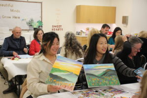 People painted many different patterns and landscapes. Some followed Amy’s lessons while others free-handed famous Santa Clarita landscapes.