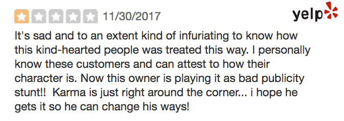 This is when he said he told the man behind the counter that they would find somewhere else to eat and began to walk out.