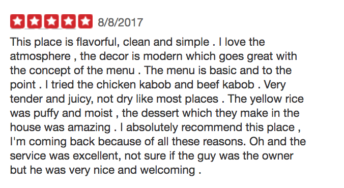 “But when she asked for the kebabs, he told her, ‘Those are kebabs and we only have chicken,’” said Rolle. “So after that exchange with my mom and him, continuing to ignore us, my mom told me … that she didn’t want to eat here.”