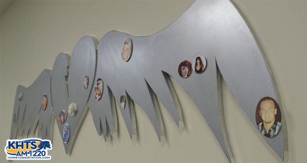 The memorial features a large image of a set of wings and a heart symbolizing the ongoing love and unfortunate loss experienced daily by surviving family members. The Angel Wing memorial wall is intended to be a permanent dedication and remembrance to the lives of those displayed.