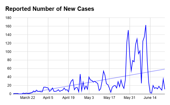 Public Health officials noted case numbers are usually higher midweek due to a testing backlog from over the weekend.