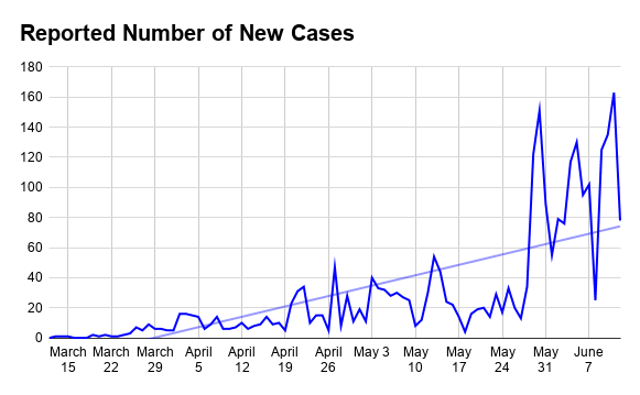 *As of Thursday, June 11, officials had recorded 1,307 cumulative cases among prisoners at the North County Correctional Facility, and 485 at the Peter J. Pitchess Detention Center. Those cases are counted in both the Santa Clarita and Castaic totals.
