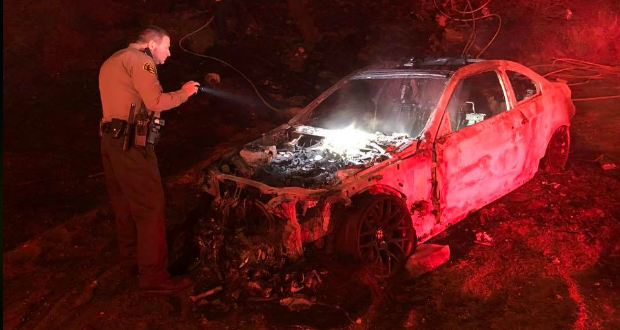 The vehicle was reported stolen and then abandoned off the Old Road. Sheriff’s are investigating the incident as an arson with the LASD Arson and Explosives Detail, added Lt. Bauer.