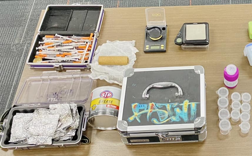 Deputies recovered over 7,000 pills resembling M-30 Percocet and fentanyl mixture, as well as several baggies of methamphetamine, a large amount of drug paraphernalia, several containers of fentanyl and contraband for the use of narcotics sales, according to Arriaga.