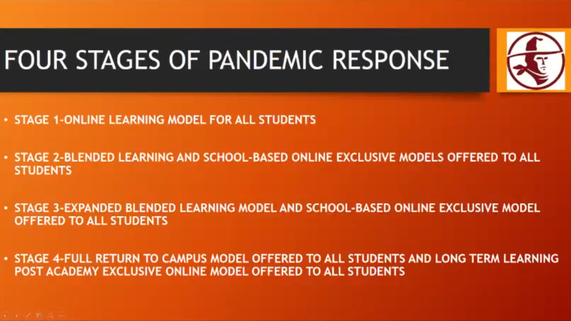 “This is an enormous undertaking, we are reinventing school for the ground up,” Kuhlman said. “This time would allow us to improve an online infrastructure and prepare a successful launch of the blended model.”