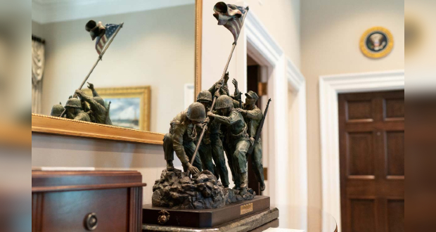 Several years ago, Dennis, a very proud Marine Corp Veteran, decided it prudent to have a number of bronze statues of Iwo Jima’s famous flag-raising scene produced and the results are absolutely spectacular.