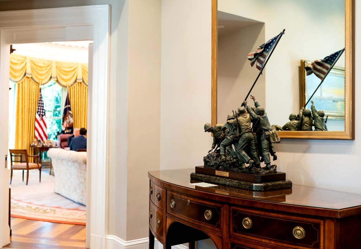 This is where Timothy Davis, CEO and founder of The Greatest Generations Foundation, stepped in after seeing Dennis’s magnificent statue. Timothy immediately contacted President Trump’s White House aides and it wasn’t long before Dennis’ extraordinary statue was transported from Valencia to rest just outside the Oval office.