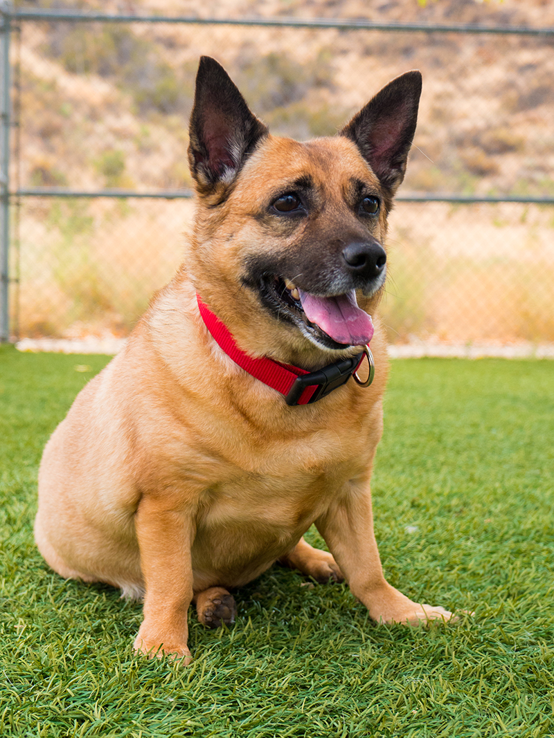 Watching Lilly prance through the play yard at the Castaic Animal Shelter and roll around gleefully in the grass, a passerby would probably never guess the chihuahua/corgi mix is 8 years old.