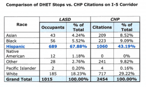 The percentage of Latinos pulled over by the California Highway Patrol (CHP) in the same stretch of the highway was about 43 percent.