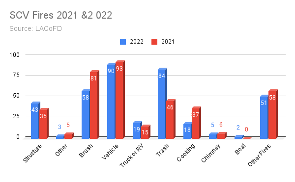 In 2022 firefighters extinguished a total of 43 confirmed structure fires in our Santa Clarita Valley compared to 35 in 2021.