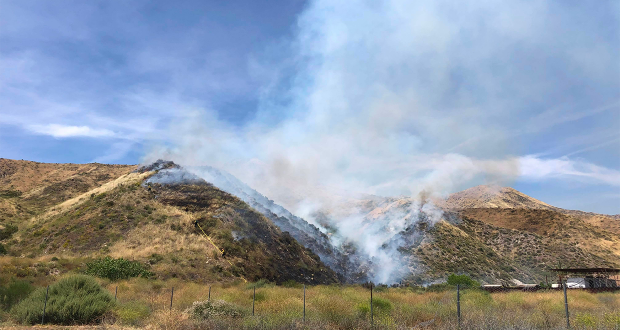 Just before 2 p.m. Sunday, a brush fire was reported to be one quarter acre in size and creeping uphill on the 17000 block of Sierra Highway in Canyon Country, according to officials.