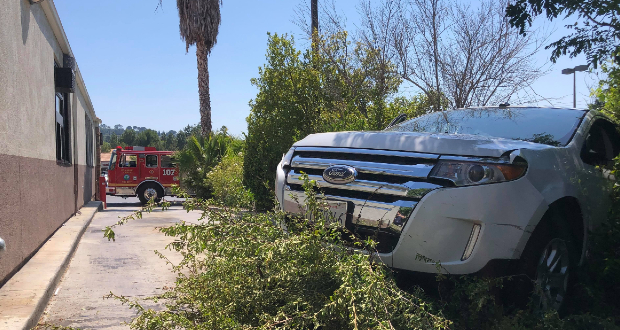 At around 2:45 p.m. Friday, officials received reports of a vehicle collision into a structure on Via Princessa and Sierra Highway in Canyon Country.