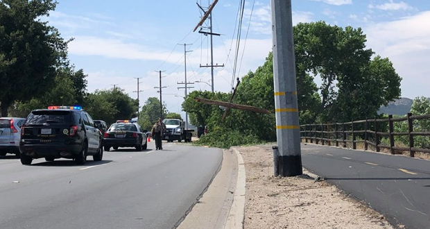As of 3 p.m., no power outages had been reported in the area as a result of a downed pole.