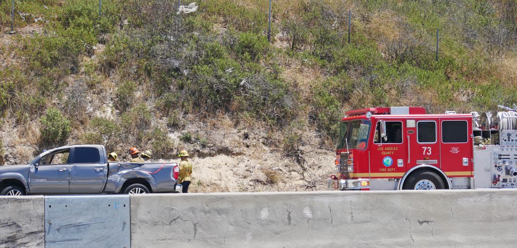 Around 12:45 p.m. first responders received reports of a traffic collision on the northbound 14 Freeway near Newhall Avenue, said Leslie Lua, a spokesperson for the Los Angeles County Fire Department (LACoFD).