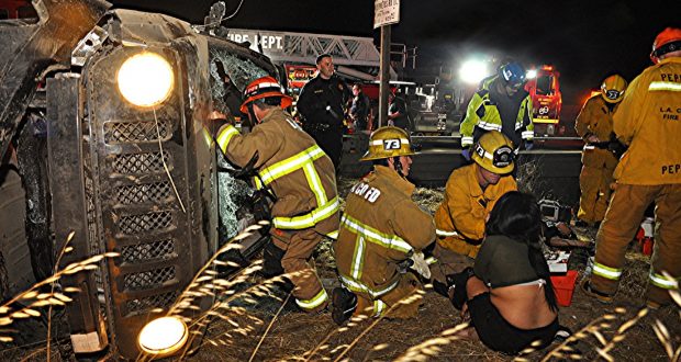 Around 12:02 a.m. Tuesday, first responders received reports of a traffic collision with persons trapped on the northbound 14 Freeway near Newhall Avenue, said Sky Cornell, an inspector for the Los Angeles County Fire Department.